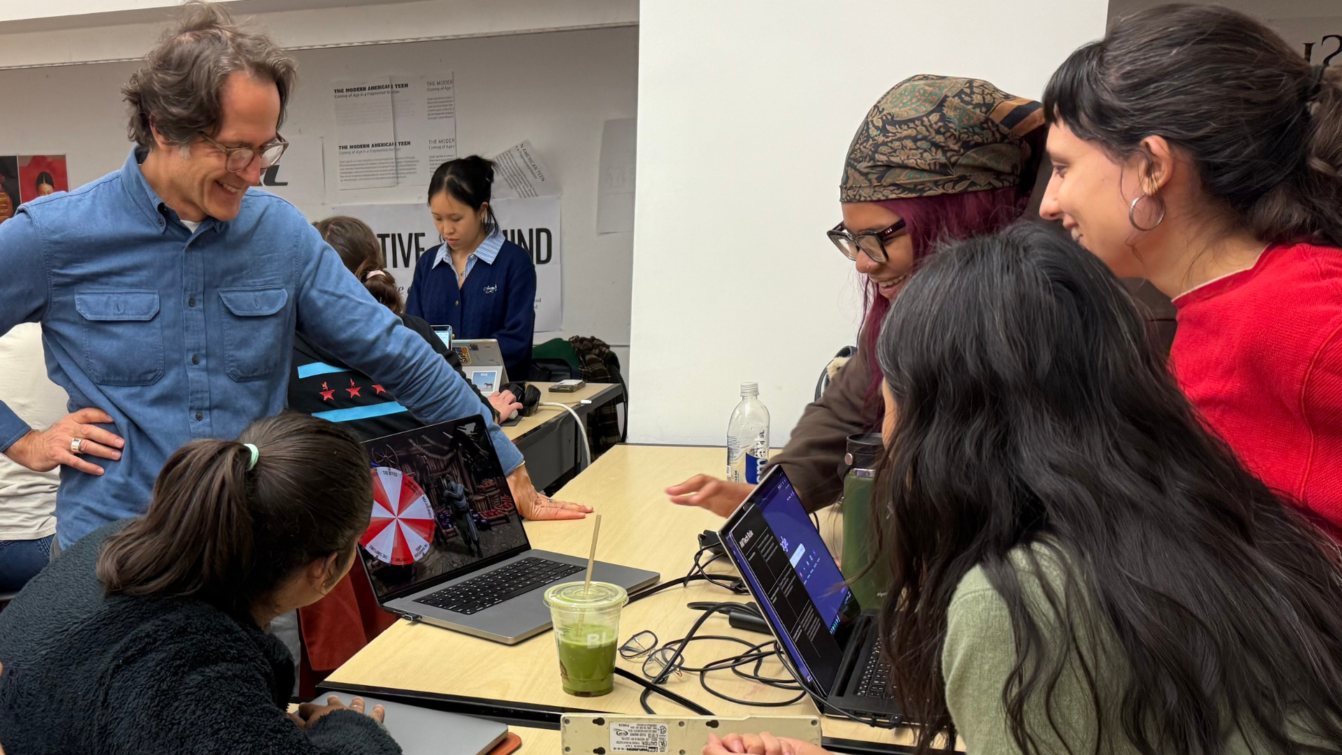 Students were pushed outside their comfort zones, taking on roles not typically part of their day-to-day practice—crafting storylines, soundtracks, wearables, ride concepts, environments, merchandise, and character experiences. Many had never before experimented with AI tools such as Midjourney, ChatGPT, or Suno, yet they dove in enthusiastically, using them to generate bold, world-building ideas.