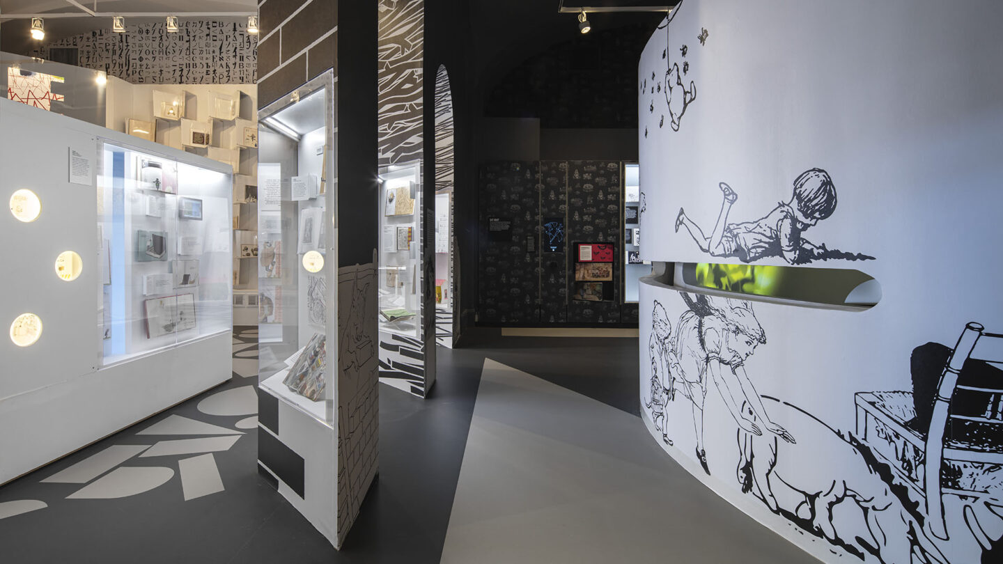 Exhibitions about books are challenging to make engaging for children. This installation allows the wonders of the illustrated works to jump off the pages, enliven the space, and speak directly to the audience