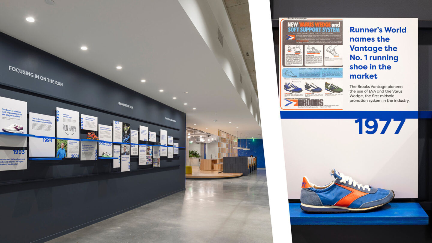 Brooks is a titan of the running world. Competitors’ product lines span across a variety of sports and streetwear, but Brooks has spent 110 years inventing and innovating the very best of running gear. Their customers are elite performance track and field athletes, cross country distance runners, your coworker who’s running her first marathon, and your dad who just needs a little more support and stability on his weekly jog. They invest in running communities across America and the globe, making the sport accessible for all. A new building on the Seattle flagship campus takes on the same spirit of transformation and attention to detail that has made Brooks who they are today, while keeping the focus on the community and what they’re creating.