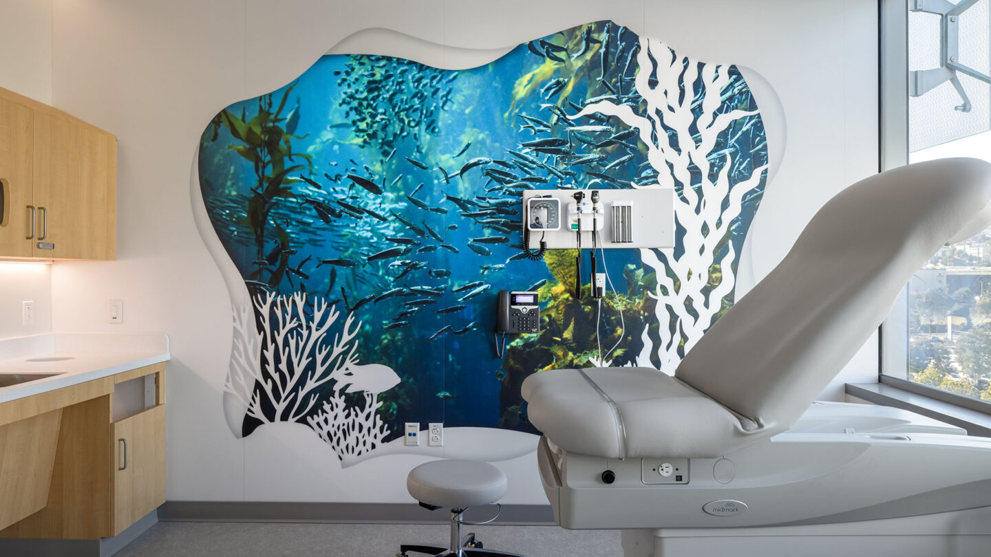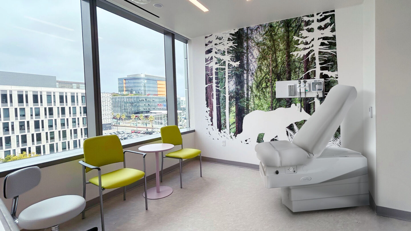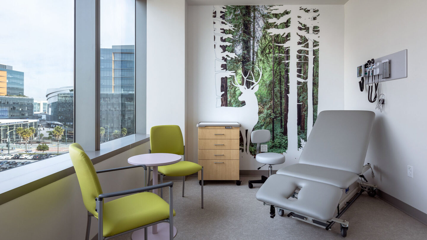 The Stad Center at UCSF exists to improve the quality of children’s lives, through chronic and specialty pain treatments, physical therapy services, and palliative care. Patients can range from newborns to young adults, and treatment plans can take months or decades. Regardless of this wide range of patient experiences, the community created by their families and medical providers is strong and dedicated to creating an experience that reduces anxiety, fear, or apprehension, and promotes a sense of peace, play, and discovery. The new clinic furthers children’s healing journeys by creating a welcoming environment that incorporates nature and enables a variety of medical and wellness practices to work together.