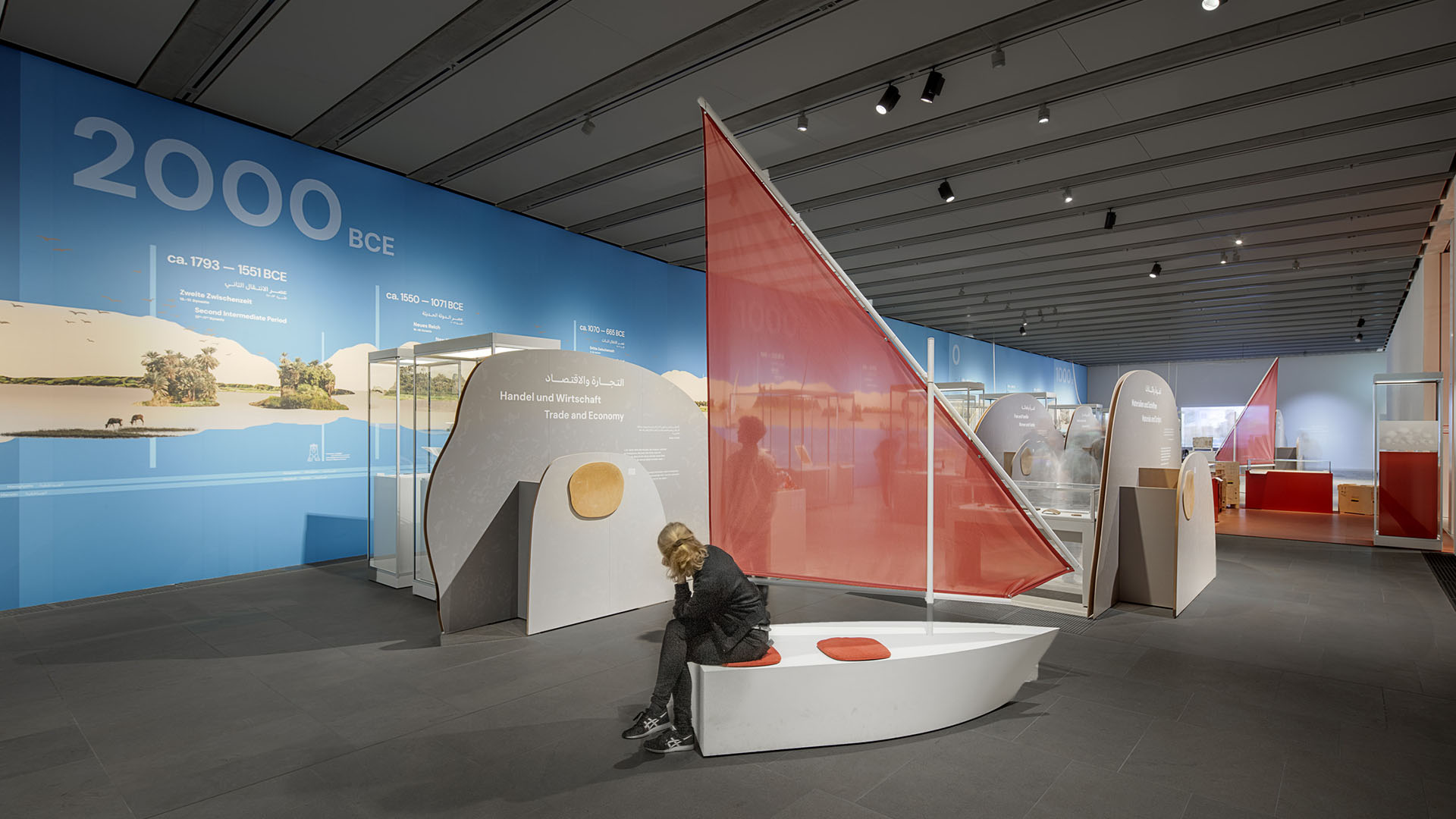 Between the islands, abstract felucca boats give the impression of a voyage on the Nile, inviting visitors to relax and reflect on Elephantine’s 4,000-year history. The objects, graphics, and texts reflect the themes of diversity, family, religion, trade, law and medicine, and offer insights and connections to today’s understanding of these topics. Interactives and tactile objects, including special scent stations developed in collaboration with scent artist Sissel Tolaas, make the exhibition truly multi-sensory. Designed under the “Design for All” principle, it offers multiple levels of accessibility and inclusion.