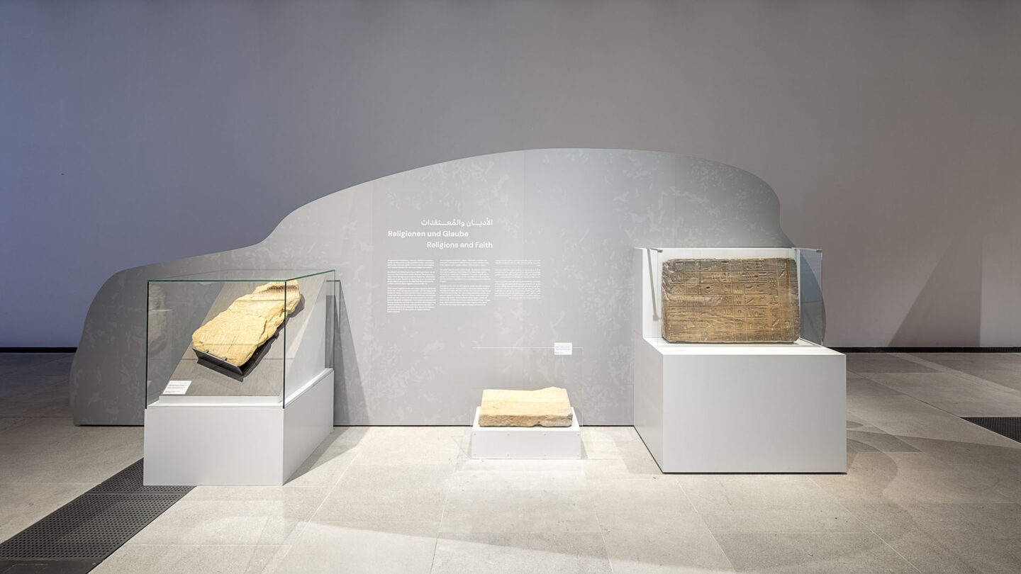 RAA’s design translates the research findings into an immersive and interactive experience that conveys a fascination for the manifold stories that can be explored and discovered through the more than 10,000 papyri and ostraca found on Elephantine Island. The exhibition is divided into the major themes of “Time” and “Space.” Despite the spatial separation of the exhibition areas in the James-Simon-Galerie and the Neues Museum, the exhibition design is based on one scenographic design language and visual identity that makes it possible to experience it as a whole.