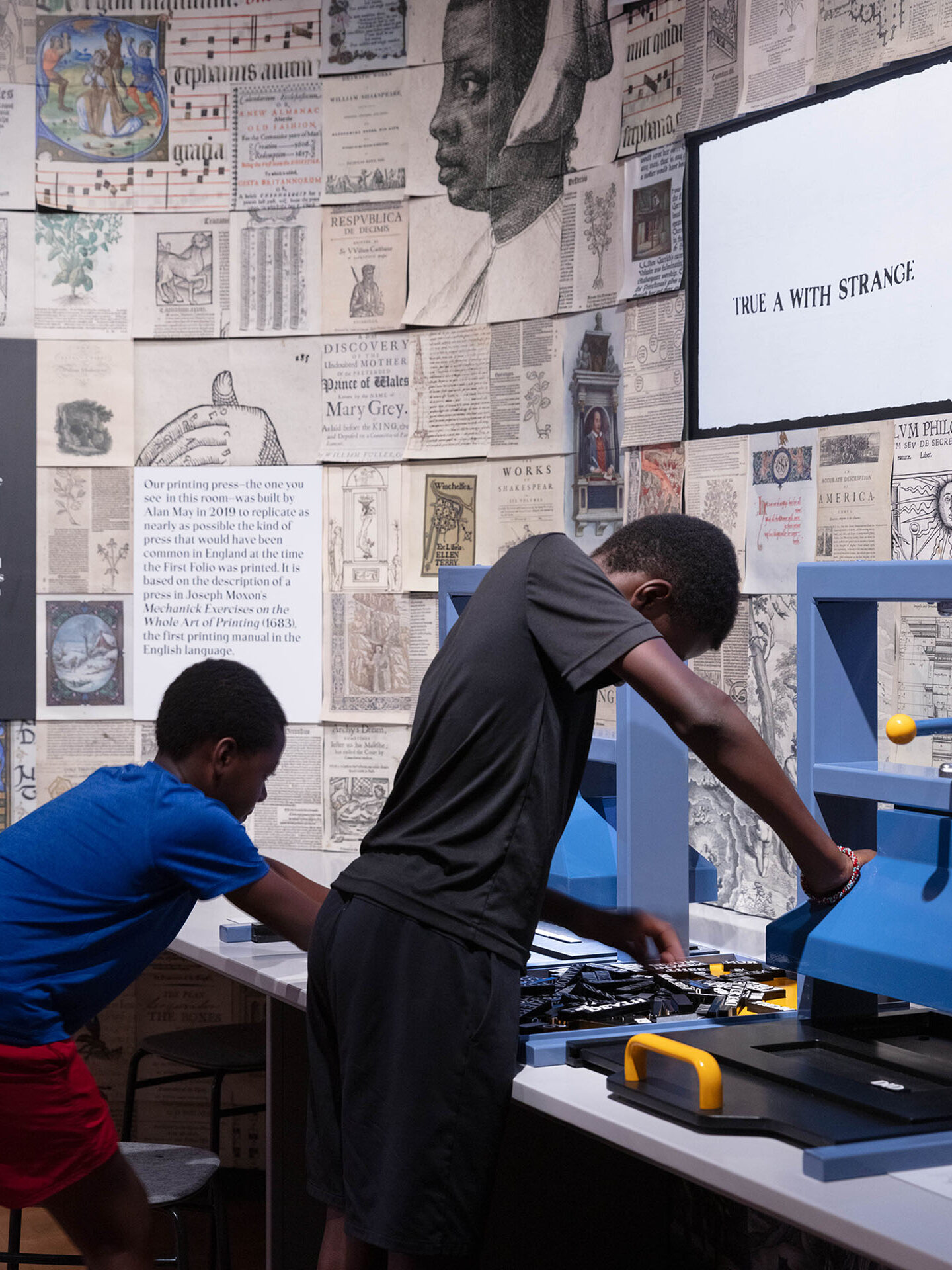 “Printing with Light” lets visitors create phrases using facsimile blocks, offering a fun, accessible experience that demystifies the printing process, where words are assembled upside down and backward.