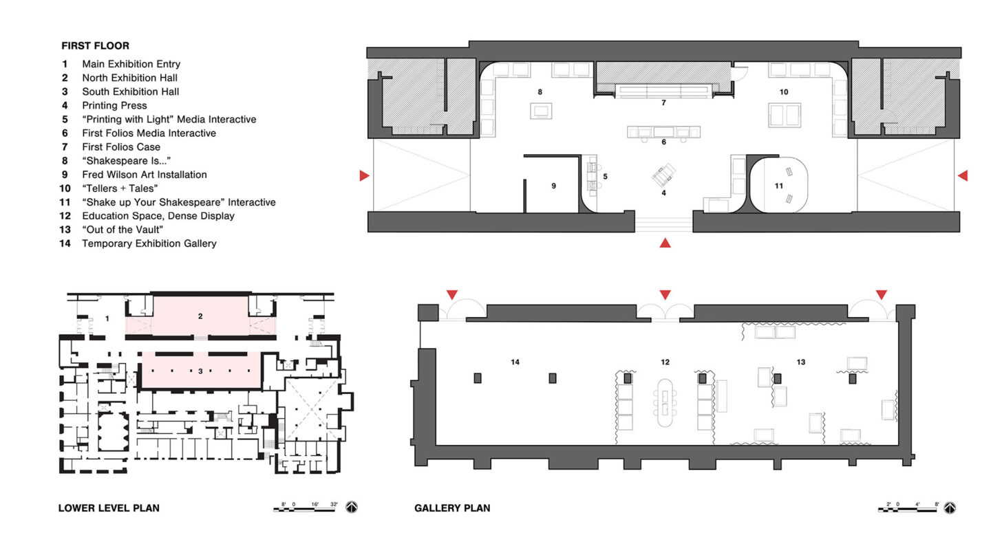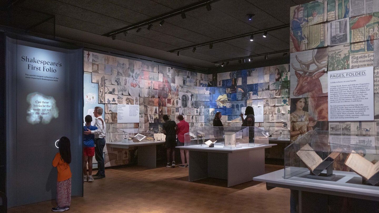 Founders Henry Clay Folger and his wife, Emily Jordan Folger, established The Folger Shakespeare Library (FSL) in 1932 as a gift to the American people. It has the world’s most extensive collection of printed works by William Shakespeare. The Library has expanded its holdings, becoming a world-class research center. Yet, the lack of meaningful public engagement with the collections limited the FSL’s impact in the Washington community and with tourists. An extensive architectural expansion created a new public entry and two large galleries. The North Gallery’s content centers on Shakespeare, the man, his works, times, and legacy. It includes their 83 First Folios, surrounded by a playful armature of illustrations, artifacts, numerous interactive media, and hands-on experiences. The South Gallery houses an area for shared exploration and “Out of the Vault,” a dense display of collections.