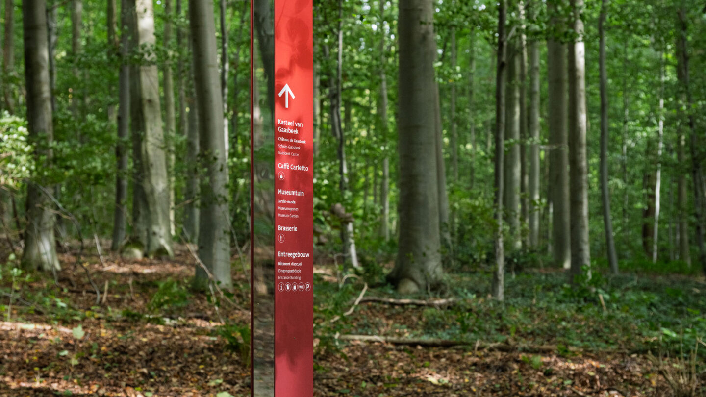 This resulted in the concept “Forest Reflections”. The wayfinding adds value by mirroring the surroundings, whether it is the forest of Gaasbeek, the landscape garden of Groenenberg or the iconic buildings on the terrain.