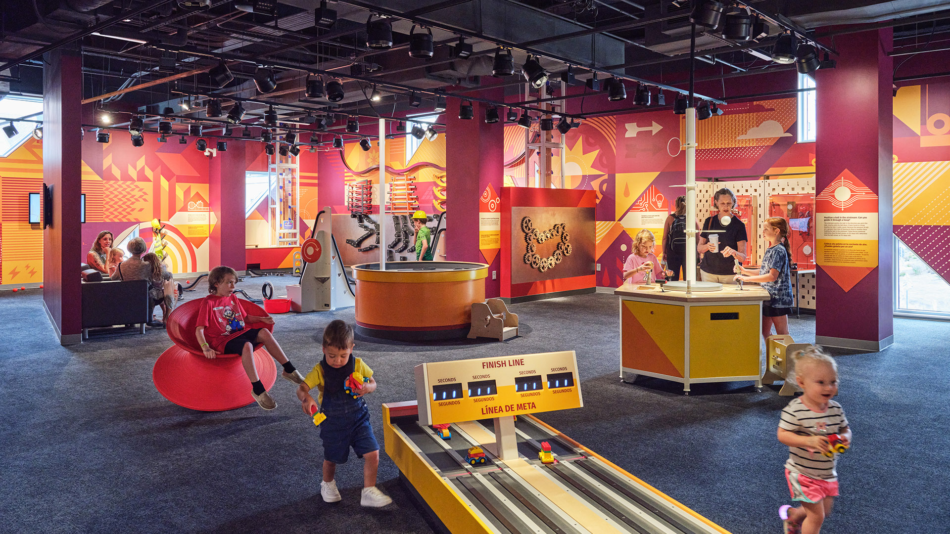 After leading the institutional and visitor experience master planning, the design firm was selected to design and build 18,000 square feet of exhibit space. The result is a vibrant facility featuring nearly 100 hands-on exhibits that blend traditional interactives with cutting-edge technology across six uniquely themed galleries. These include “In Motion,” “Wonders of Water,” “Storytelling,” and “By Design,” all brought to life with original art direction featuring bespoke murals, structures, and immersive environments. The design goal was to create sophisticated, yet playful, environments for all visitors which included collaboration with local artists to reflect and celebrate Winston-Salem’s creative spirit.