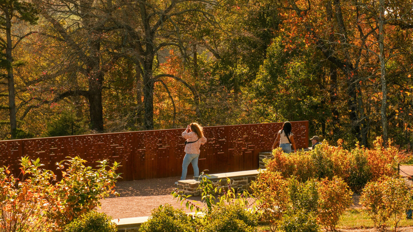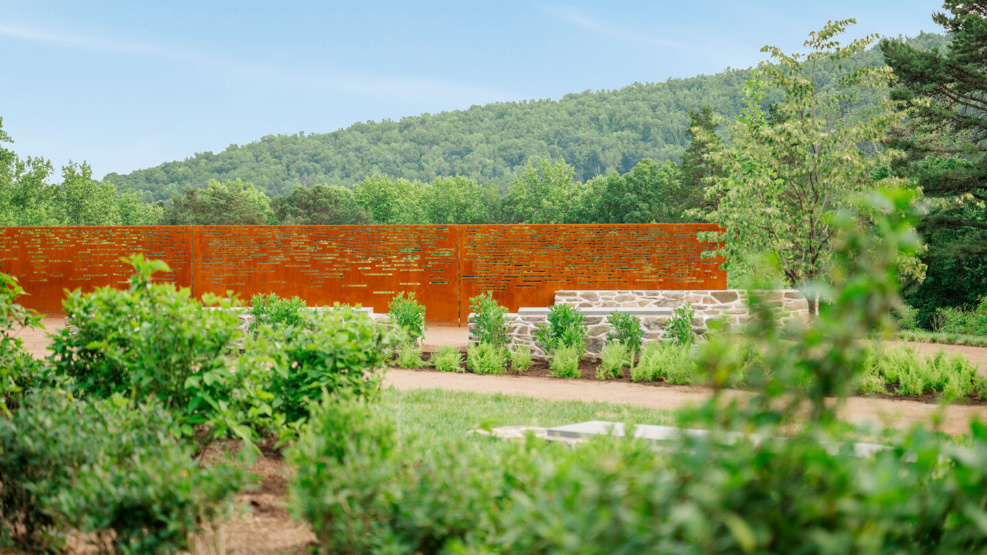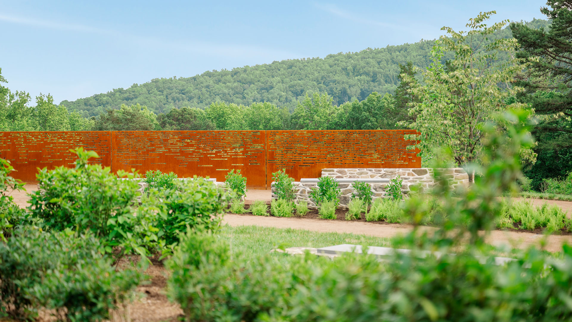 With a backdrop of Montalto, the Contemplative Site is centered on a 60-foot-long curved, weathered steel wall etched with the names of those known to have been enslaved by Jefferson.