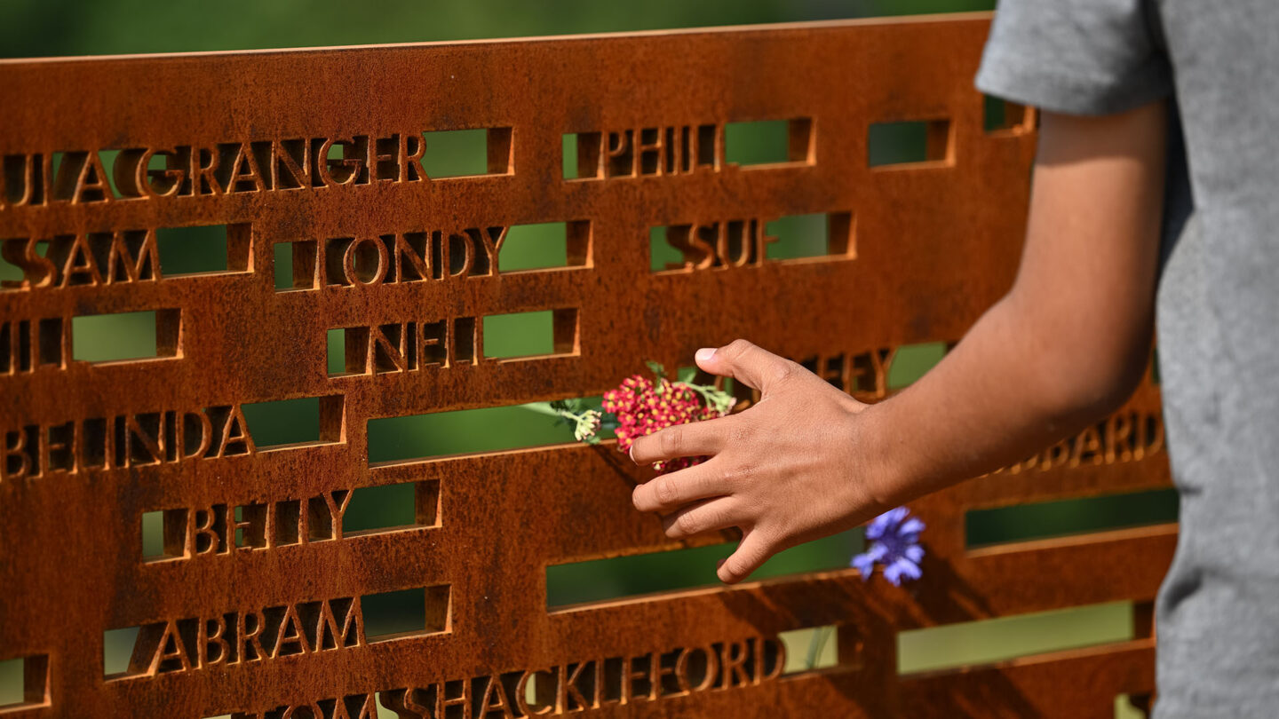 The Cor-Ten steel wall is comprised of five 12-foot-long panels with blank spaces provided to allow for inclusion of additional names should further research reveal new information.