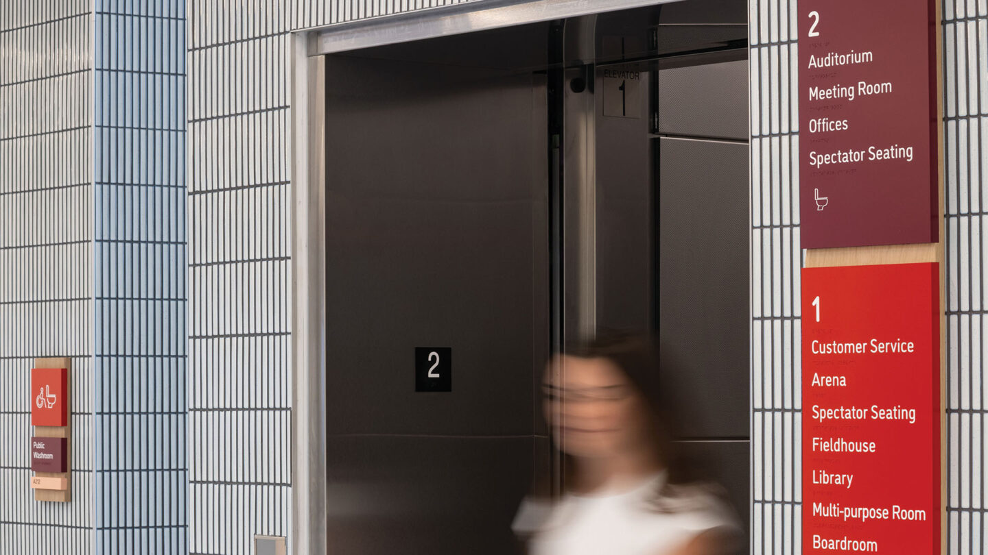 These 3 sources also informed elements like: the donor wall, room signage, directional signage, arena environmental graphics and seating patterns, court configuration markings on the field house floor, and custom pictograms that use colours to define different program spaces.