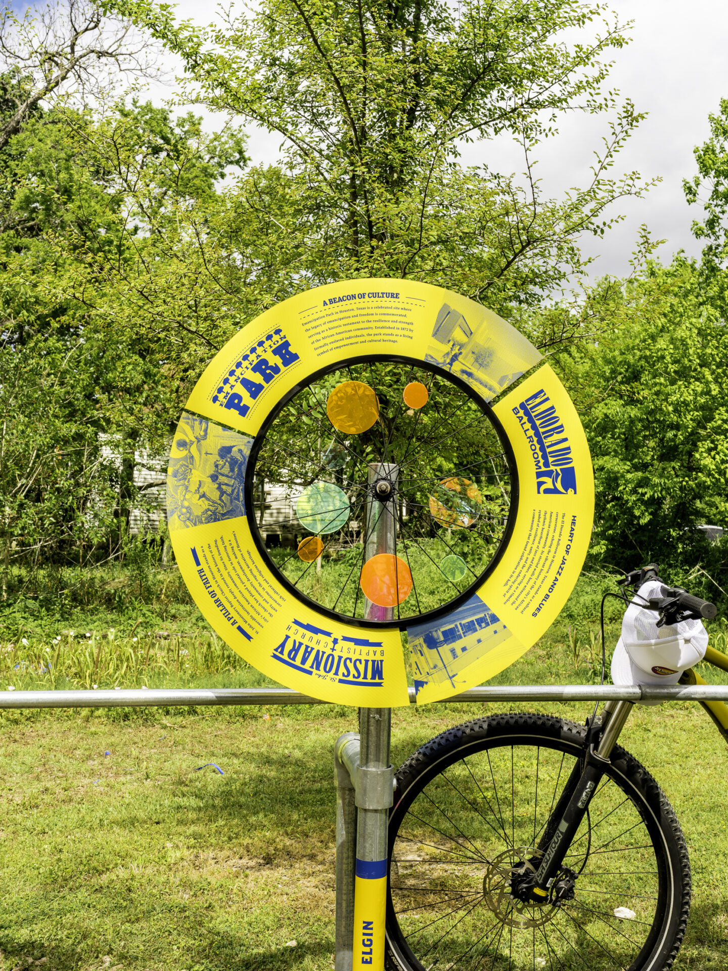 This project tackles a challenging story in an interactive and engaging fashion. The use of bike wheels to tell this important story on the bike path is clever and fun. This project represents the best of student collaboration to produce an outcome that is tangible and implemented.