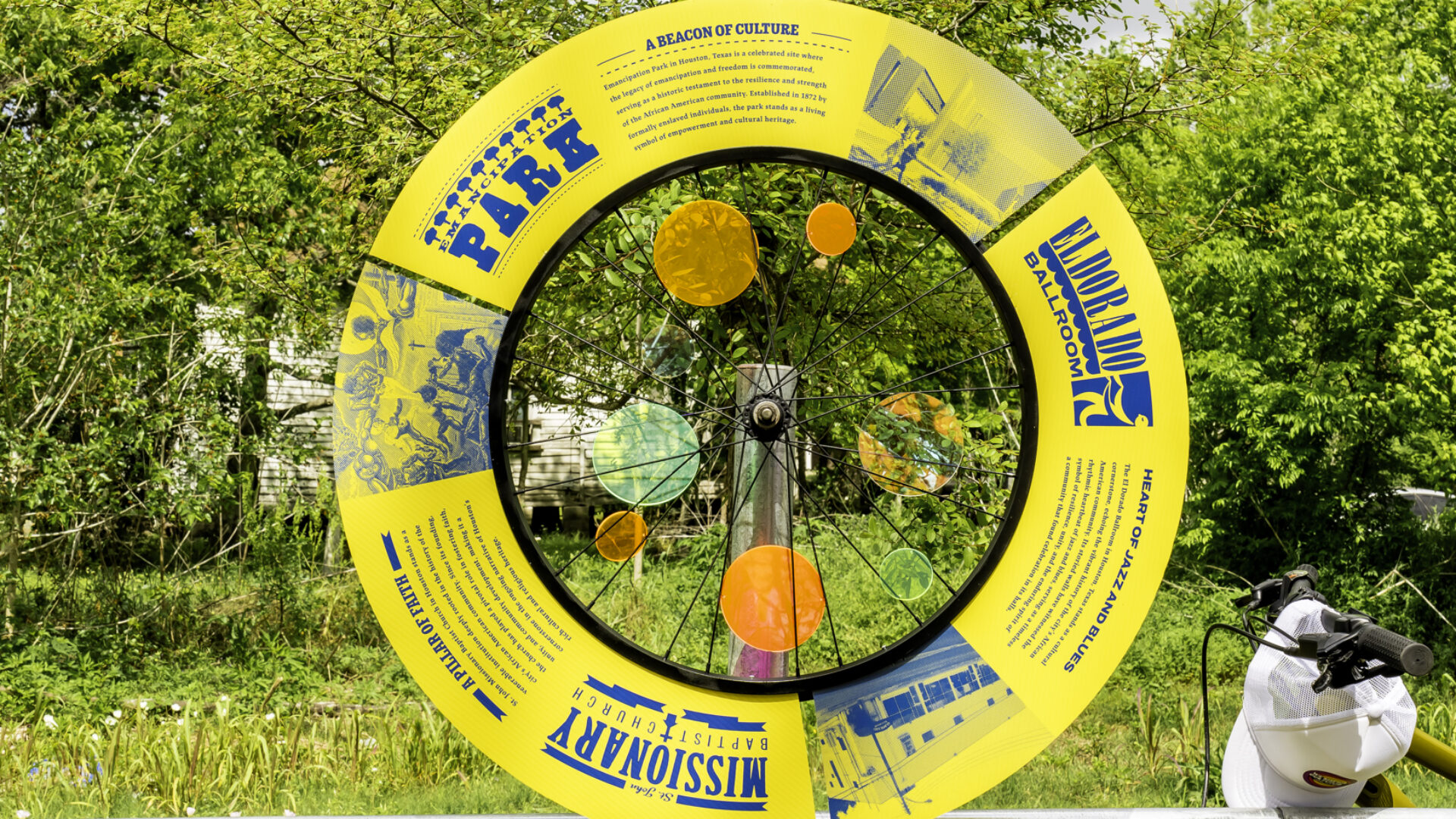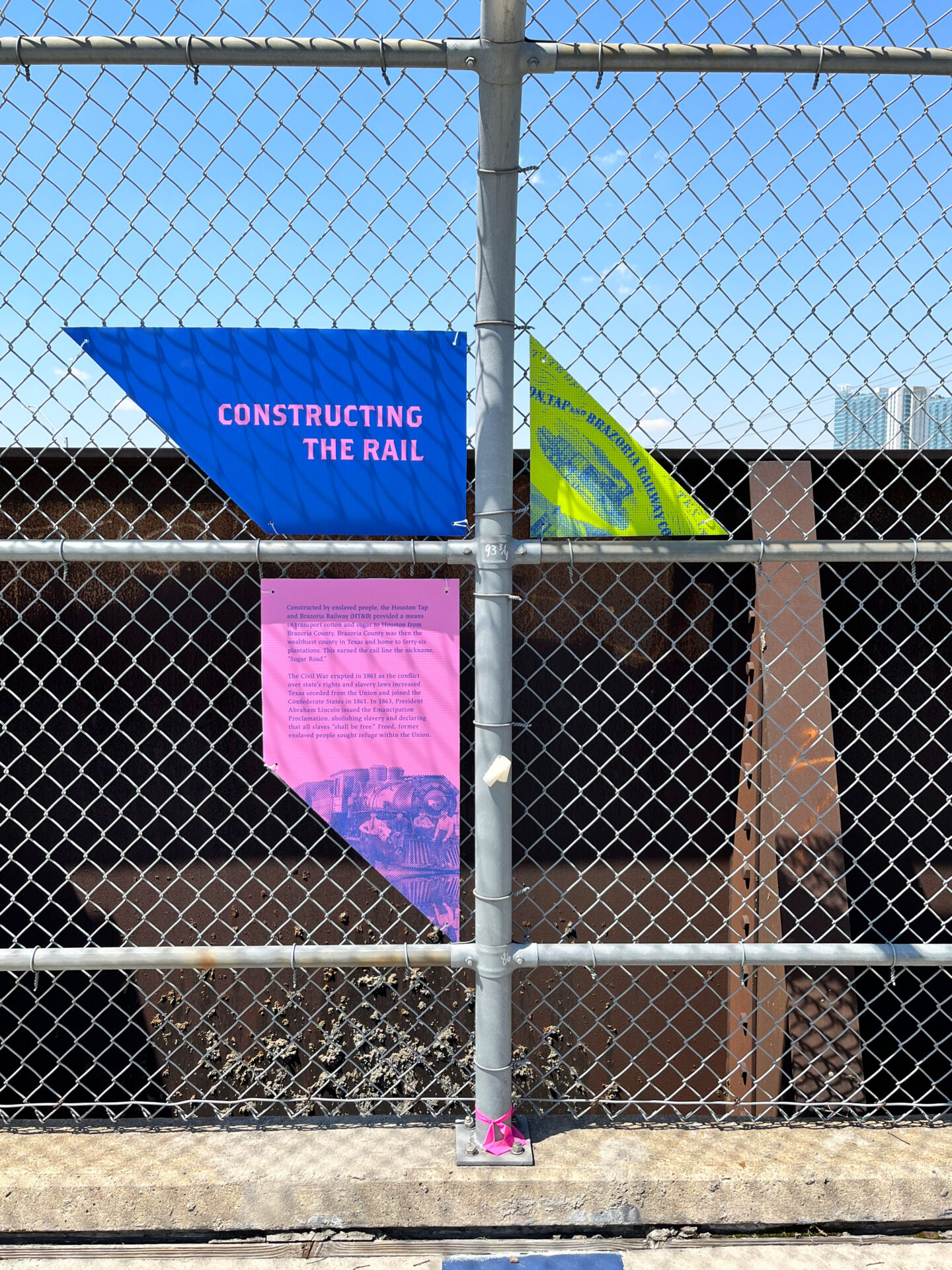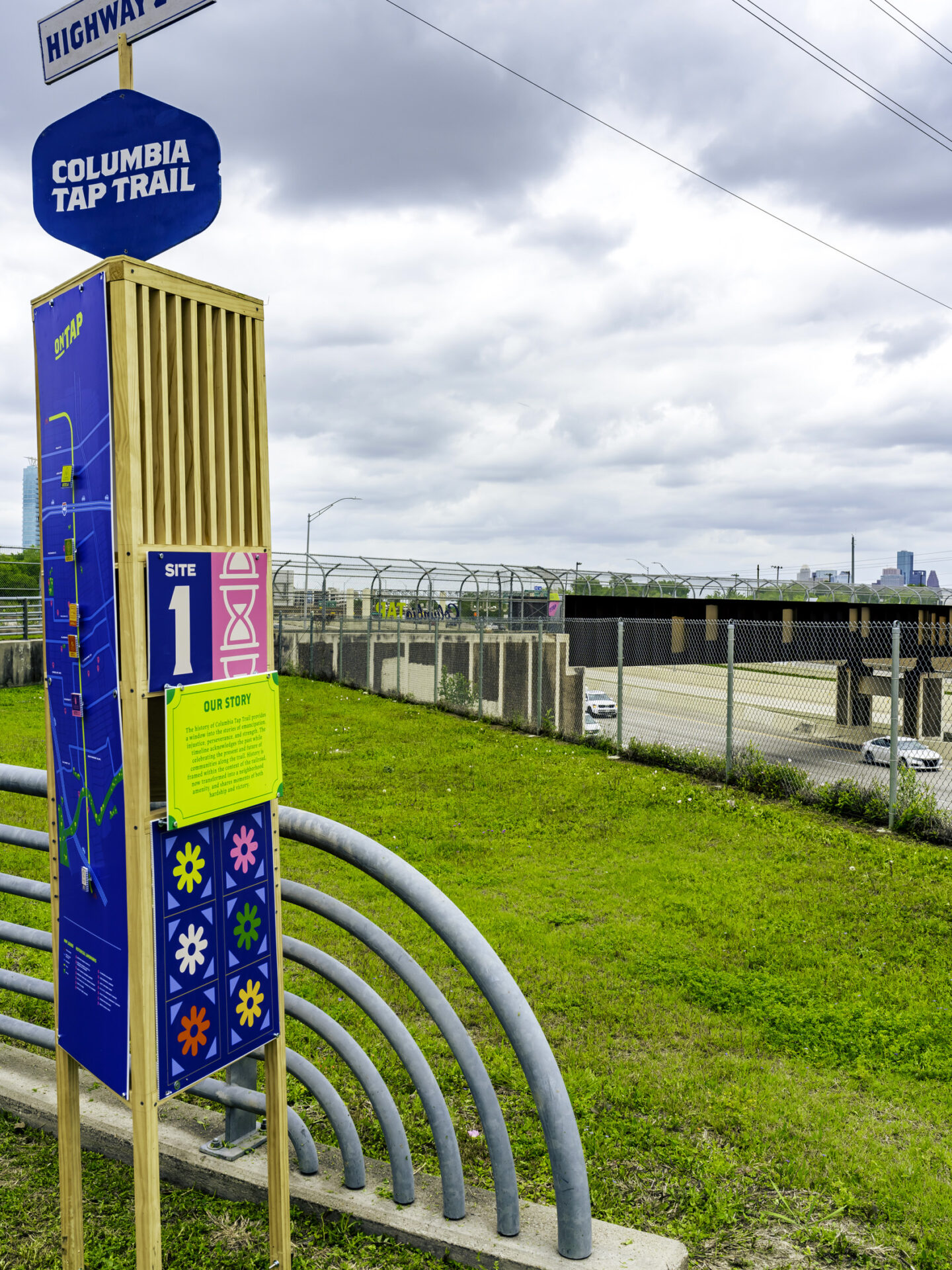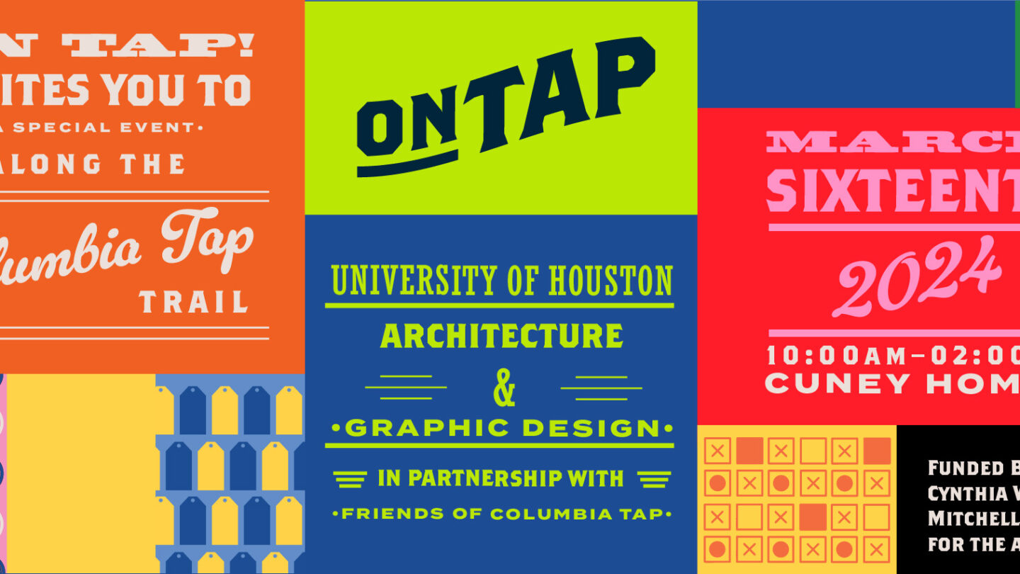On TAP was a temporary, site-specific project for Columbia Tap Trail that focused on interpreting the history, economy, resilience, culture, and community values of the Third Ward. The project engaged with historic sites, neighborhoods, hike/bike trails, and green spaces. Seven teams were formed, comprised of a total of 24 senior graphic design students from the Kathrine G. McGovern School of Art’s Graphic Design Program and 14 fourth- and fifth-year students from the Gerald D. Hines College of Architecture and Design. Each team selected a site along the trail to create interactive installations. These installations were designed to engage the public and surrounding communities during the Third Annual Third Ward On TAP event, raising awareness of the trail and its potential amenities.