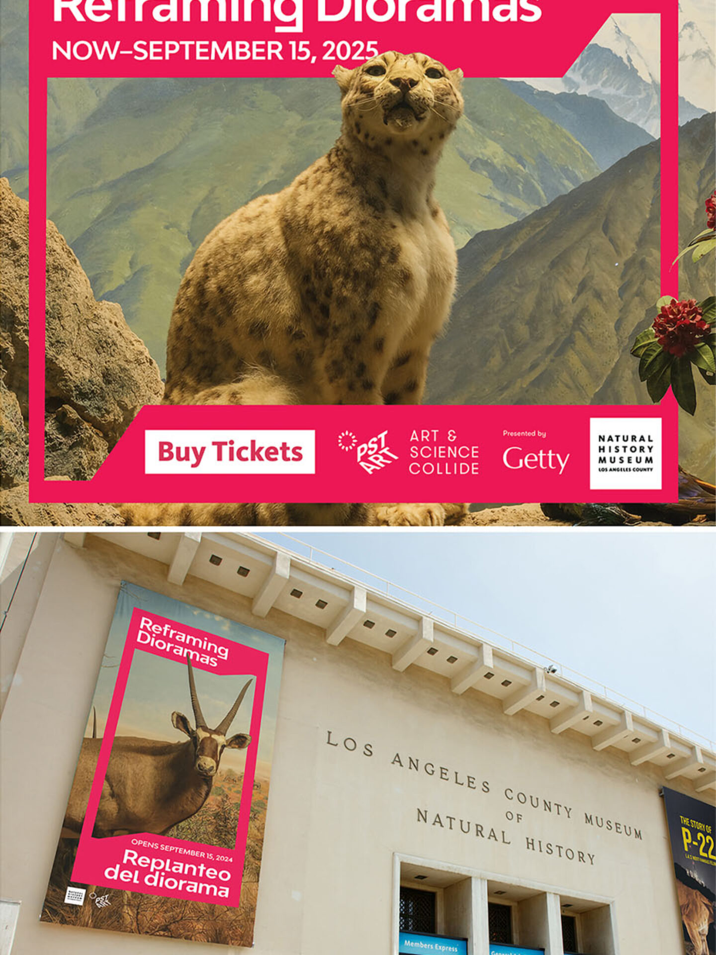 In September 2024, the Natural History Museum of Los Angeles County (NHMLAC) commemorated the centennial of its historic diorama halls, which showcase more than 75 incredibly detailed habitats from around the world. Reframing Dioramas: The Art of Preserving Wilderness celebrates and examines the hundred-year-old history of these dioramas. As part of the wider art initiative PST ART: Art & Science Collide, the exhibition deconstructs the art, and investigates the science that make dioramas so compelling, while taking a critical look at the past, present, and future of the medium.
