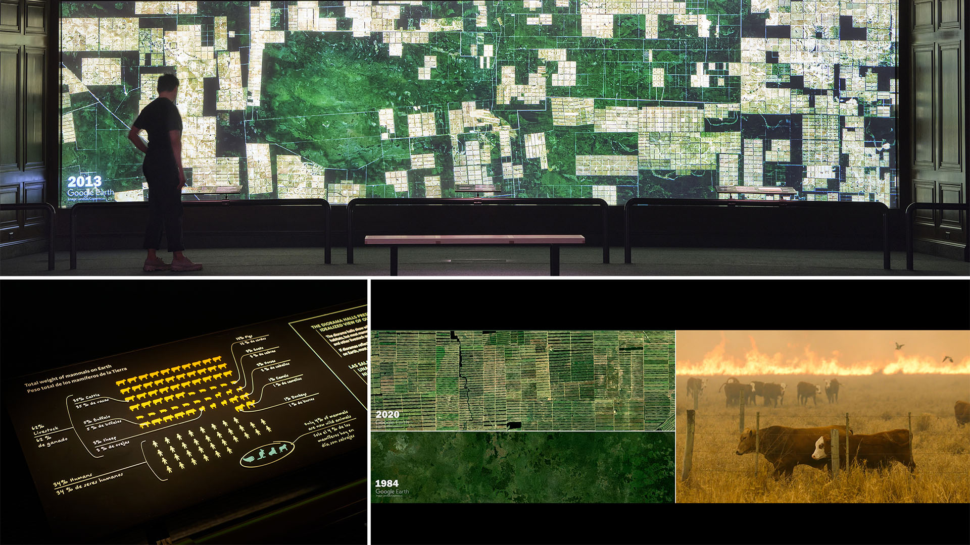 The rear diorama bay transforms into the Gran Chaco region, depicting the reality that dioramas don’t: two-thirds of Earth’s mammals are livestock like cows.
