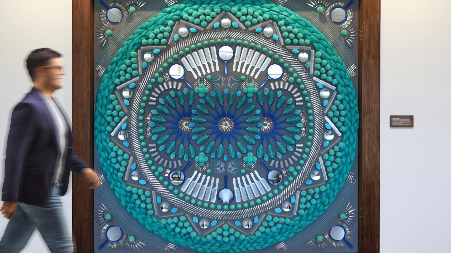 Though the concept appeared simple, its execution was anything but. We conducted extensive material research, refined color palettes, developed multiple rounds of mockups, and produced full-scale layouts with every element. We partnered with a fabricator whose expertise and dedication matched the heft of craft we expected. They even enlisted a specialist to braid and secure 162 feet of turquoise hair extensions in one of the installations, achieving the exact texture and form needed.