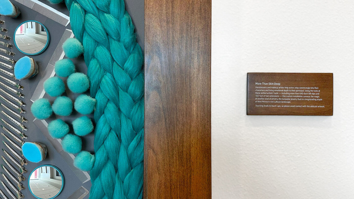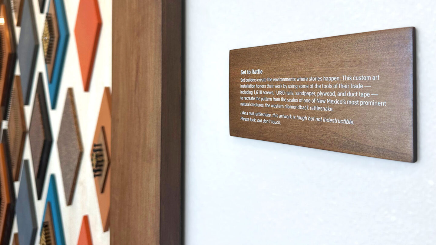 The finished pieces are tactile, thoughtful, and engaging. They honor the skilled tradespeople who shape the entertainment industry while rooting the work in the cultural and natural context of New Mexico. Discreet plaques accompany each piece, explaining the concept and offering insight into the modesty of the materials, creating an additional layer of connection for viewers.