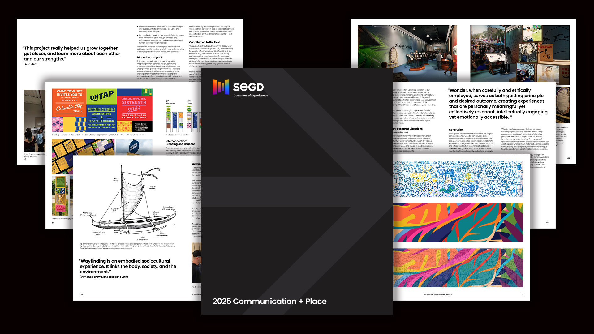 SEGD actively collaborates with and provides outreach to design programs at internationally recognized colleges and universities. Our signature academic education event is the annual SEGD Academic Summit, a two-day virtual event. Design educators and researchers from around the world are invited to submit papers for anonymous peer-review. Selected research is presented at the SEGD Academic Summit and published electronically in SEGD’s annual journal Communication + Place. The Summit and e-publication are platforms for academic researchers to disseminate their creative work, models for innovation in curriculum, and best practices for research related to experiential design.