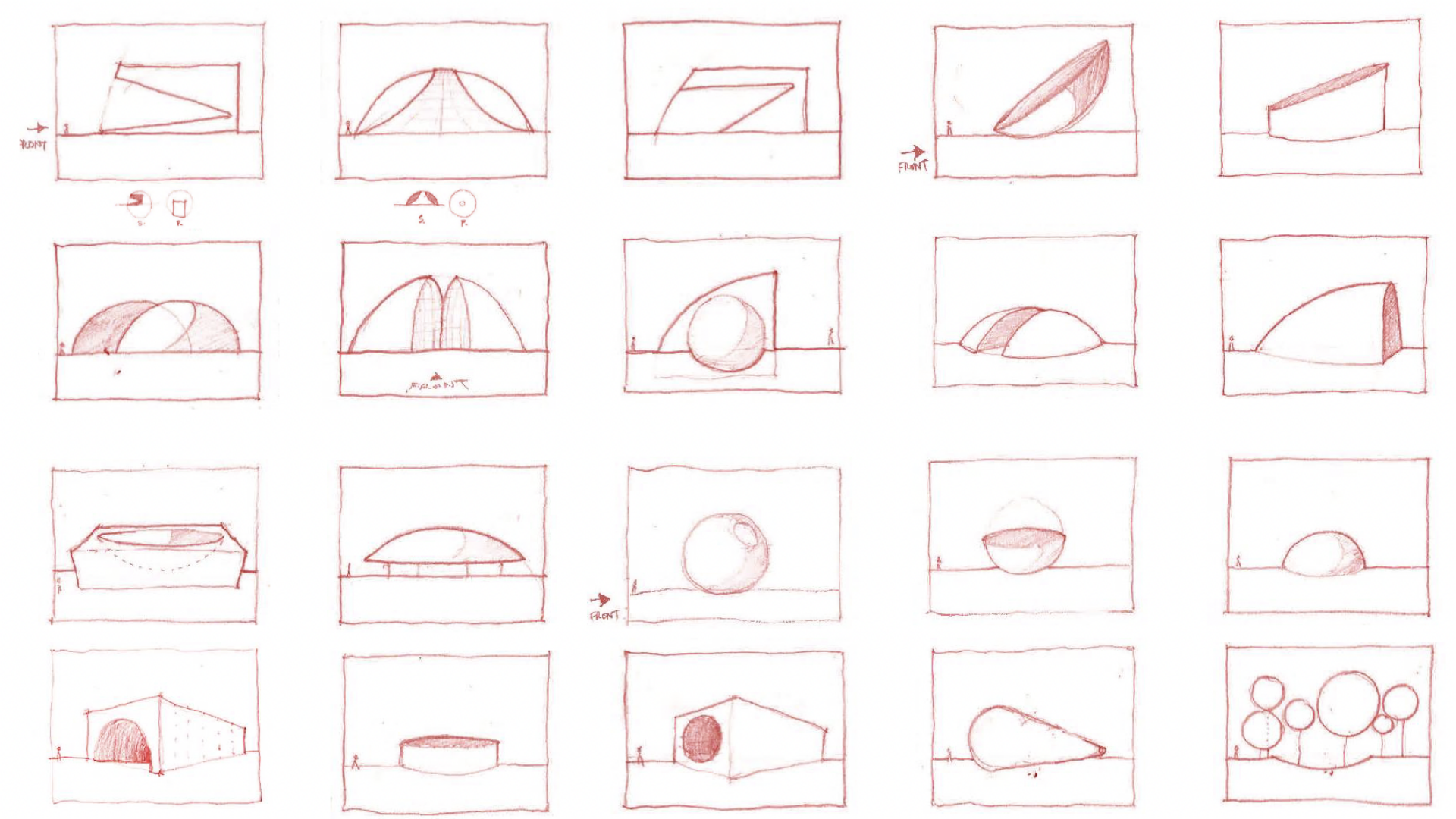 During the creative pitch stage in 2022, the objective was to design something “very uniquely Singapore, yet unexpected.” The design team proposed an incredibly clear, concise, bold form with the decision to create a three-dimensional red dot within the Expo site. As the red dot is seen on the world map, the pavilion is similarly seen on the EXPO site. Chu explained that the pavilion’s placement and form mirror Singapore’s global position, “we are really, really small compared to the whole globe…but we are distinctive.” The EXPO site is an island known as Yumeshima, or “Dream Island” which also inspired the name Dream Sphere rather than directly labeling the structure as the little red dot.