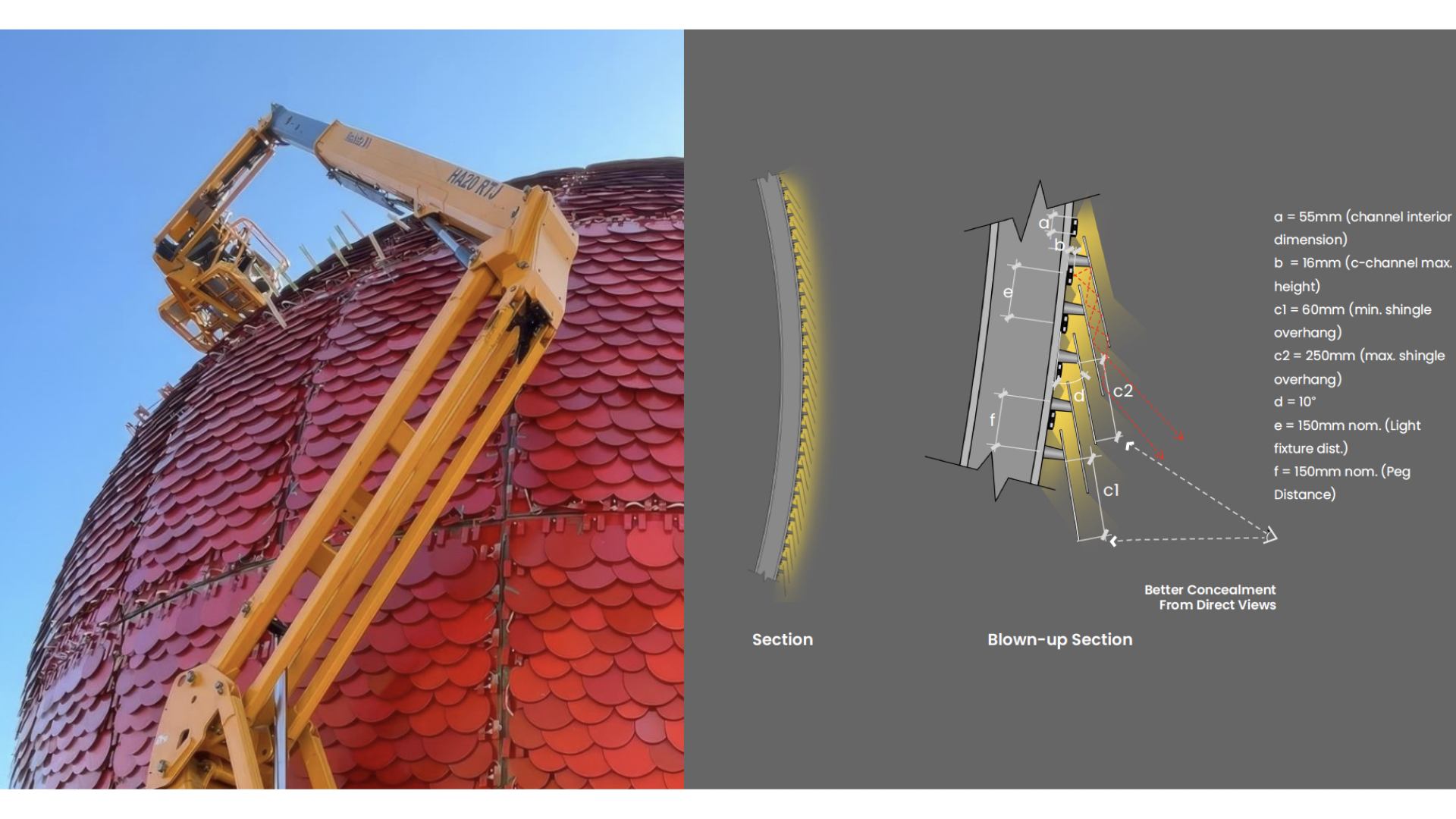 As shared by Seah Chee Huang, Chief Executive Office of DPA, and lead architect of the pavilion, “the Dream Sphere represents the collective aspiration… to co-create a better, more sustainable and lovable future for all.” The pavilion’s design and materiality reflected an integrated approach to sustainability and post-EXPO lifecycle. Materials were carefully chosen to minimize environmental impact. For example, most of the aluminum discs that clad the sphere are being recycled. Aluminum is not only lightweight and durable enough for the six-month EXPO but also infinitely recyclable, making it an ideal material for an EXPO structure. Some of the aluminum discs are being used for future projects.