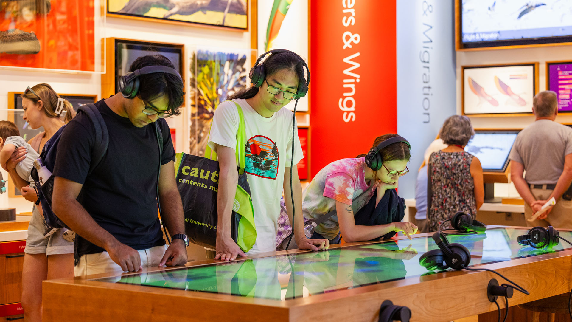 The Cornell Lab of Ornithology Visitor Center communicates sustainability through education and immersion. Interactive exhibits explore migration, habitat, and biodiversity through sound, media, and tactile displays. Scientific research is translated into an accessible public story that deepens awareness of ecological interdependence.