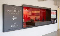 Focused on new work, emerging artists, arts education, and community outreach, The Strand’s identity had to convey the unadorned immediacy of experimental theater and reflect the gritty, transitional aspects of its surrounding neighborhood. Inspired by the grittier qualities of the new theater’s neighborhood and the experimental nature of The Strand, the design response customized the nonprofit’s existing brand typeface to look like a stencil. This theme was carried throughout the building, inflecting every part of the user experience from exterior identification and signage to interior donor recognition and wayfinding.